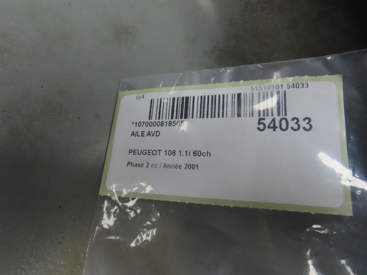 Aile avant droite occasion PEUGEOT 106Phase 2 04-1996->09-2003 1.1i 60ch