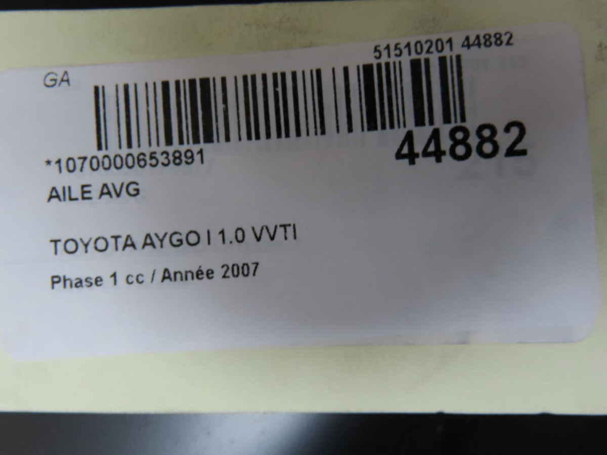 Aile avant gauche occasion TOYOTA AYGO IPhase 1 06-2005->11-2009 1.0 VVTI