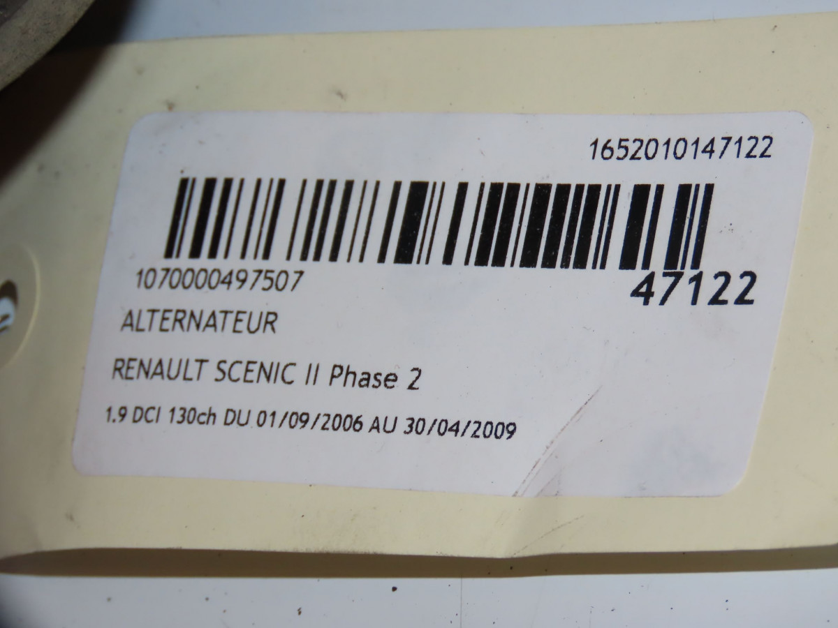 Alternateur occasion RENAULT SCENIC IIPhase 2 09-2006->04-2009 1.9 DCI 130ch