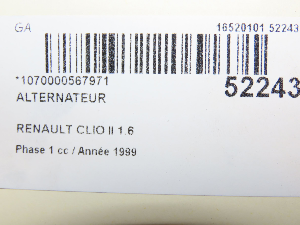 Alternateur occasion RENAULT CLIO IIPhase 1 03-1998->06-2001 1.6