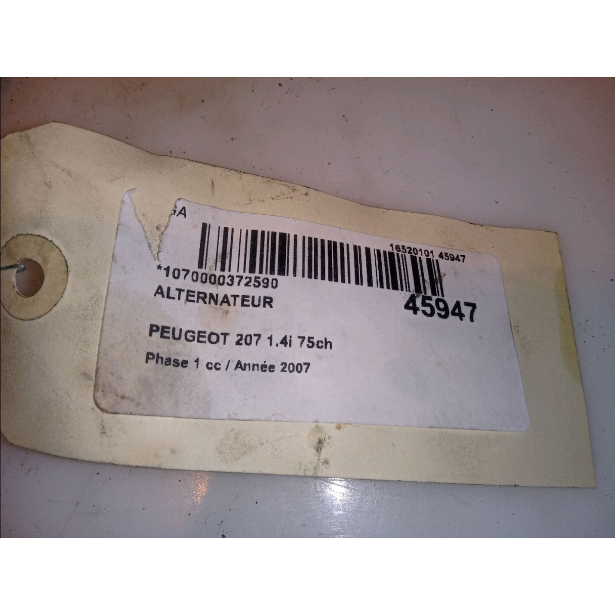 Alternateur occasion PEUGEOT 207Phase 1 04-2006->06-2013 1.4i 75ch