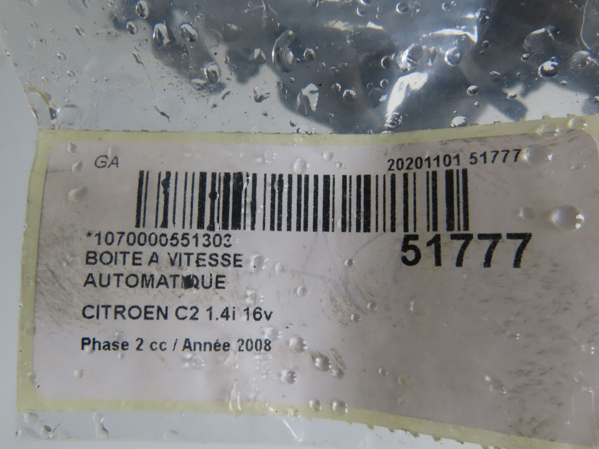 - TYPE BOITE DE VITESSE AUTOMATIQUE : 20CQ31 - KILOMETRAGE: 148 890 - TEST ET CONTROLE QUALITÉ RÉALISÉS PAR UN OPÉRATEUR SPÉCIALISTE - GARANTIE: 12 MOIS - CITROEN C2 Phase 2 05-2008->12-2009 1.4i 16v