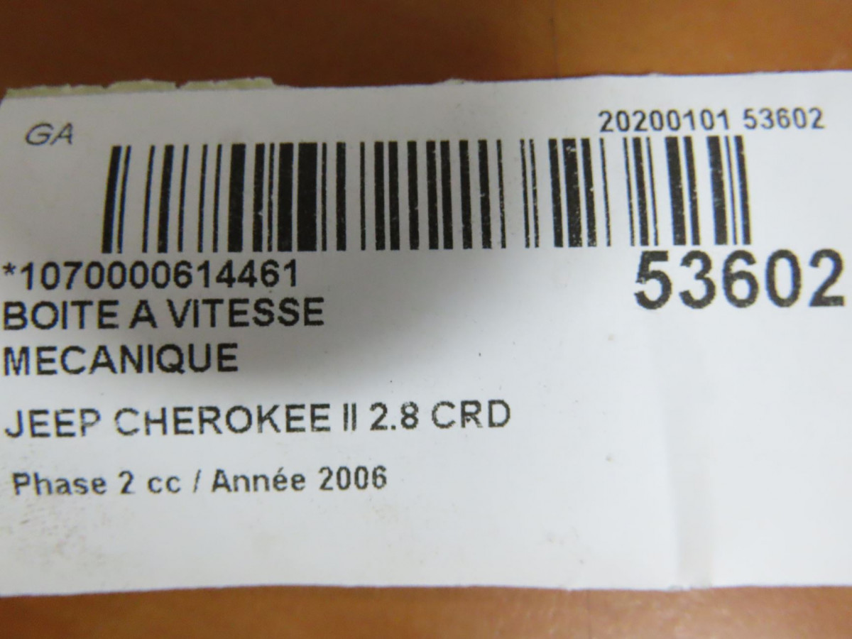 Transmission longitudinale ar occasion JEEP CHEROKEE II Phase 2 09-2004->12-2007 2.8 CRD 52853362AB