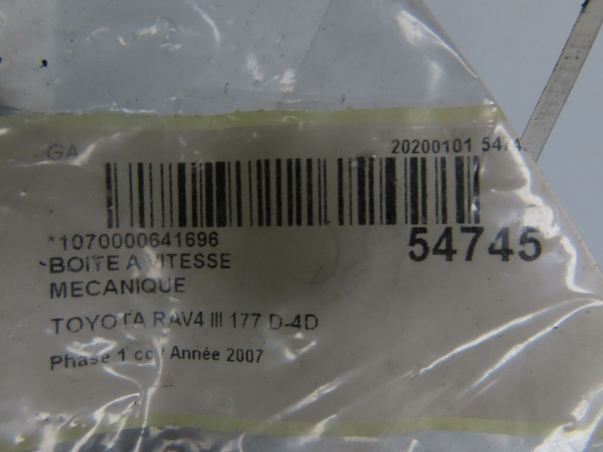 Boîte à vitesse mecanique occasion TOYOTA RAV4 IIIPhase 1 02-2006->11-2009 177 D-4D