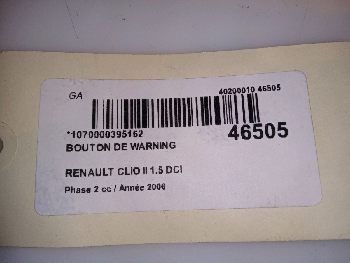 Bouton de warning occasion RENAULT CLIO IIPhase 2 06-2001->07-2006 1.5 DCI 70ch