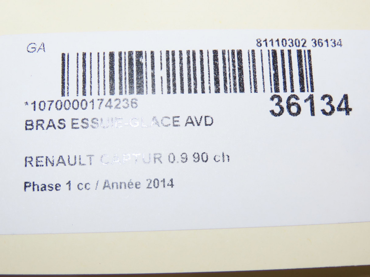 Bras essuie-glace avant gauche occasion RENAULT CAPTUR Phase 1 02-2013->... 0.9 90 ch 288810288R