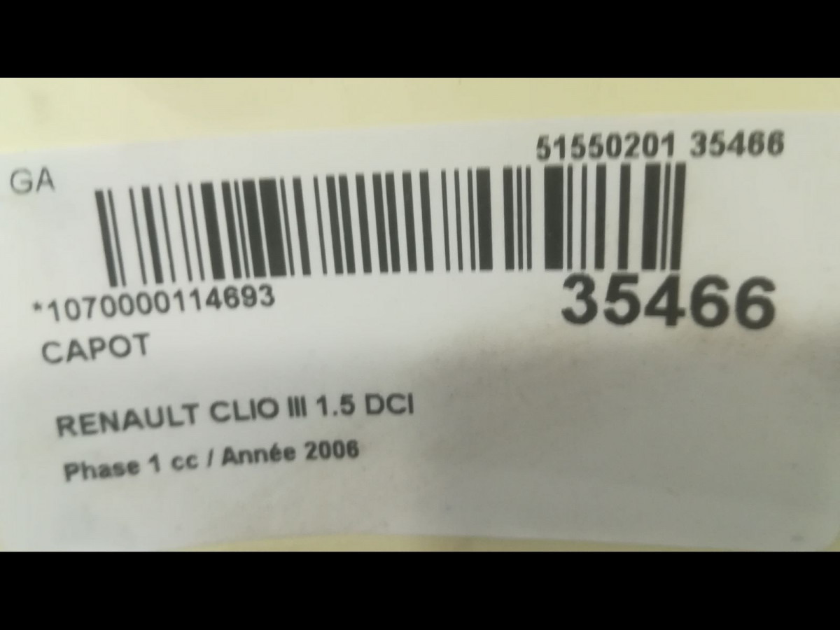 Capot occasion RENAULT CLIO IIIPhase 1 09-2005->03-2009 1.5 DCI 70ch