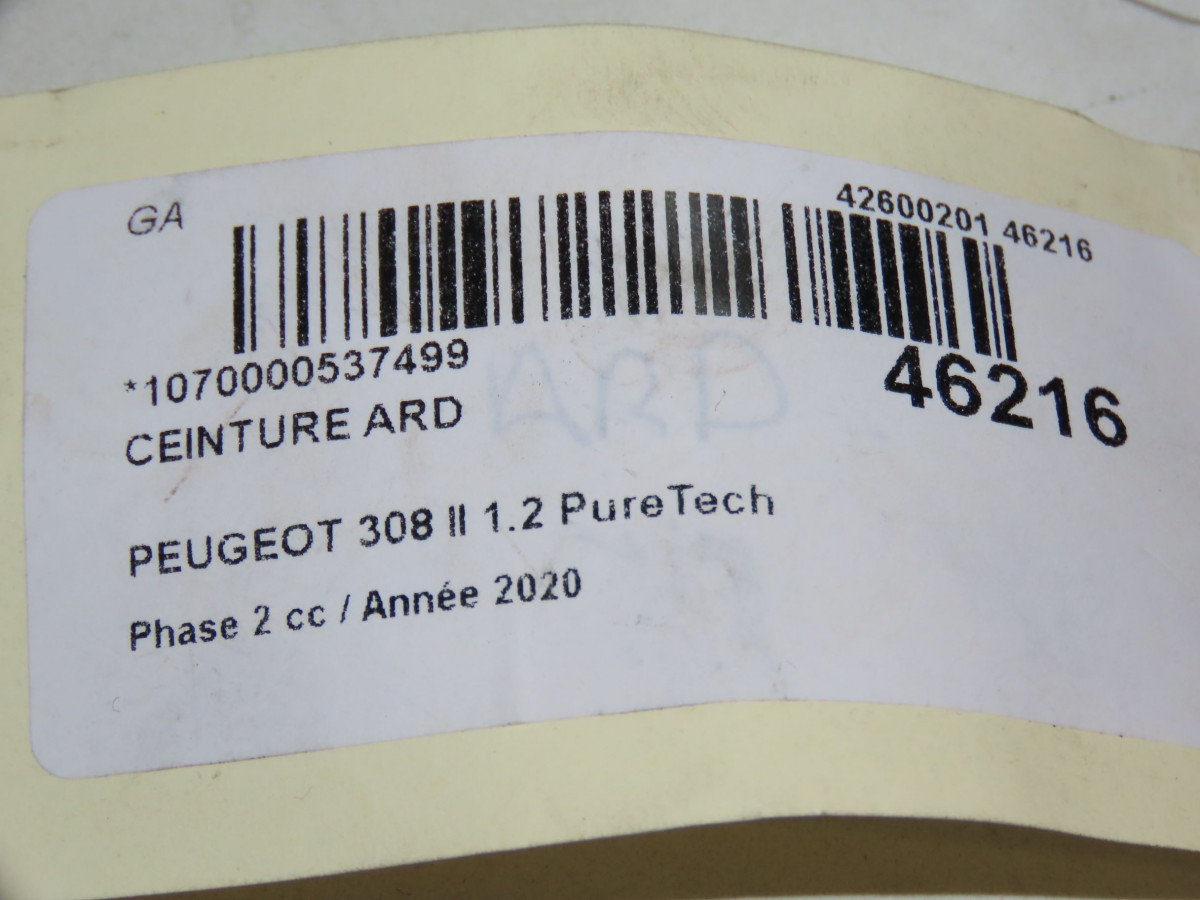Ceinture arrière droite occasion PEUGEOT 308 IIPhase 1 04-1995->04-1999 1.2 PureTech 110ch