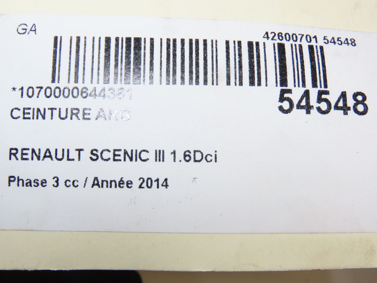 Ceinture avant gauche occasion RENAULT SCENIC III Phase 3 04-2013->... 1.6Dci 130ch 868851641R