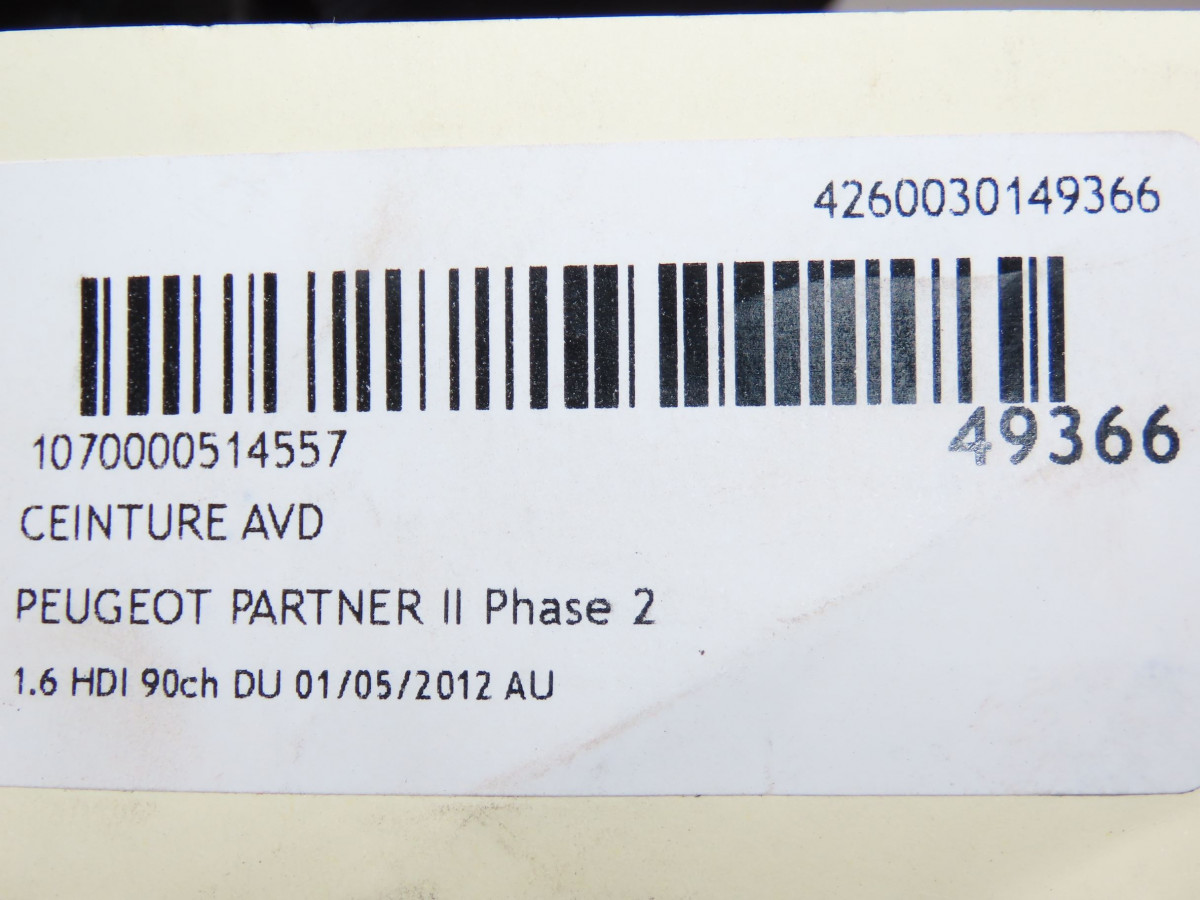 Ceinture avant droite occasion PEUGEOT PARTNER IIPhase 2 05-2012->... 1.6 HDI 90ch