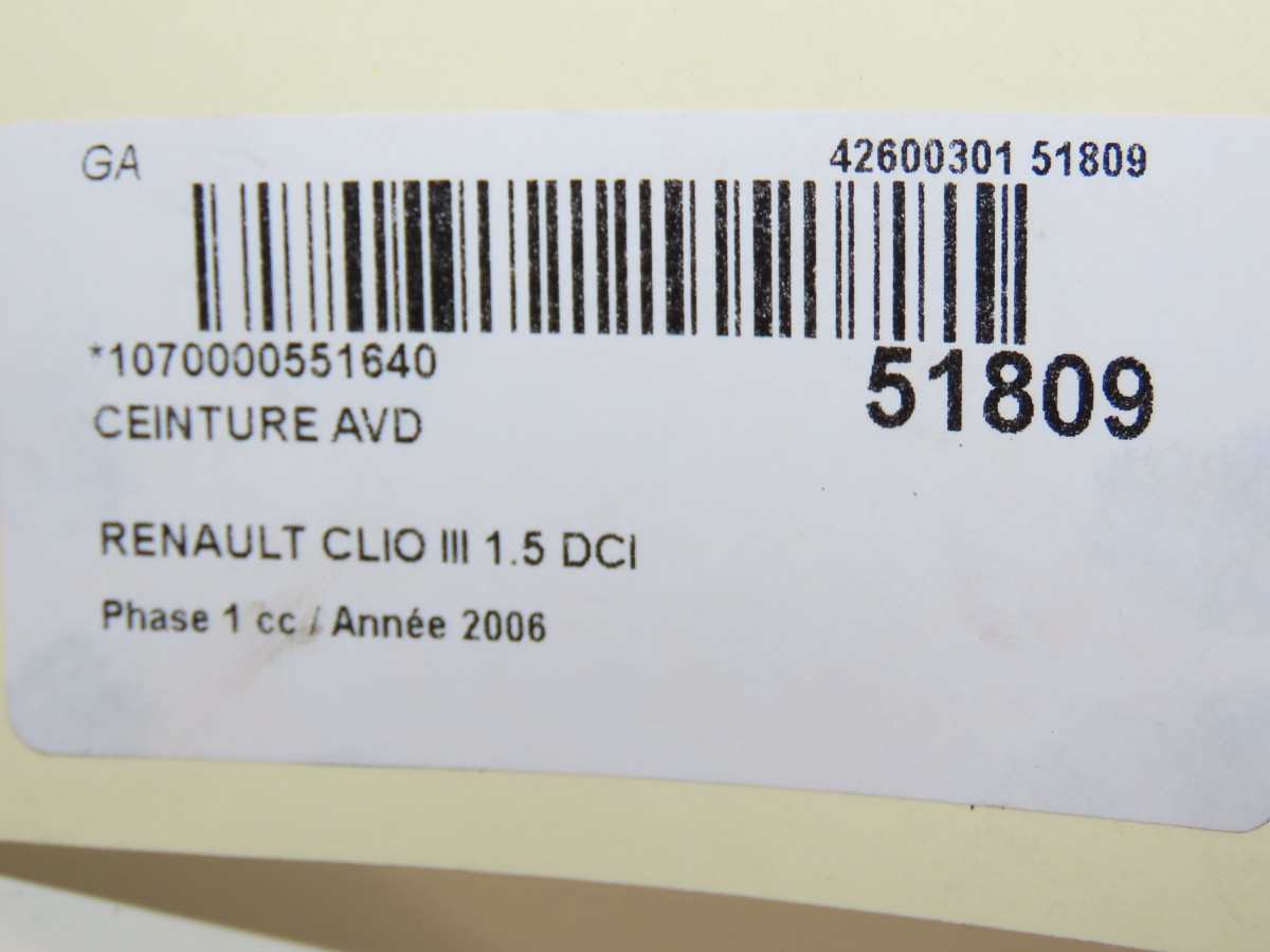 Ceinture avant droite occasion RENAULT CLIO IIIPhase 1 09-2005->03-2009 1.5 DCI 70ch