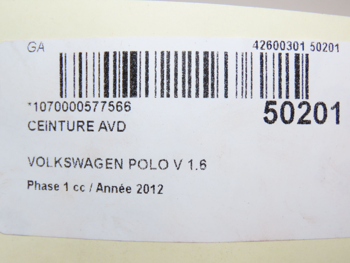 Ceinture avant droite occasion VOLKSWAGEN POLO VPOLO V Phase 1 2009-09-01->2014-05-31 1.6 TDI 90