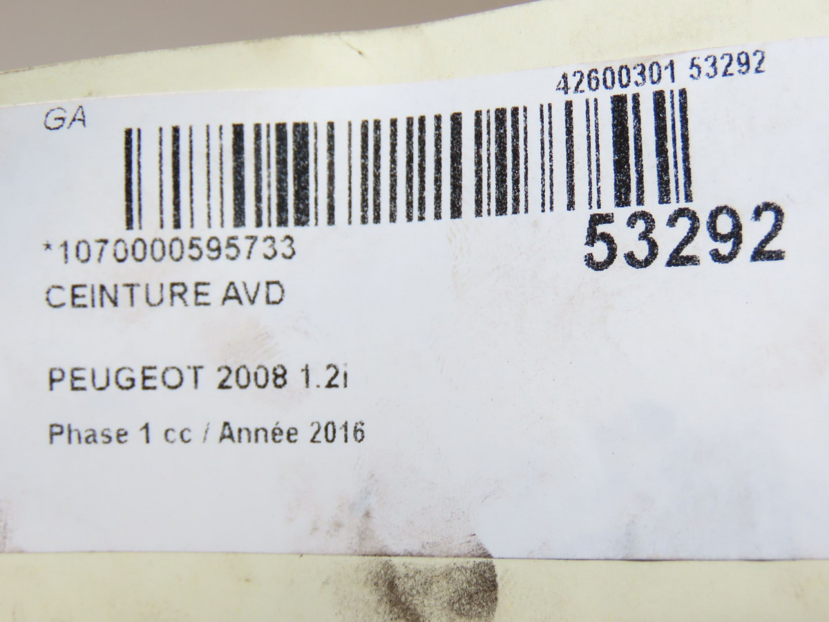 Ceinture avant gauche occasion PEUGEOT 2008 Phase 1 01-2013->... 1.2i PURETECH 110ch 98063150XX
