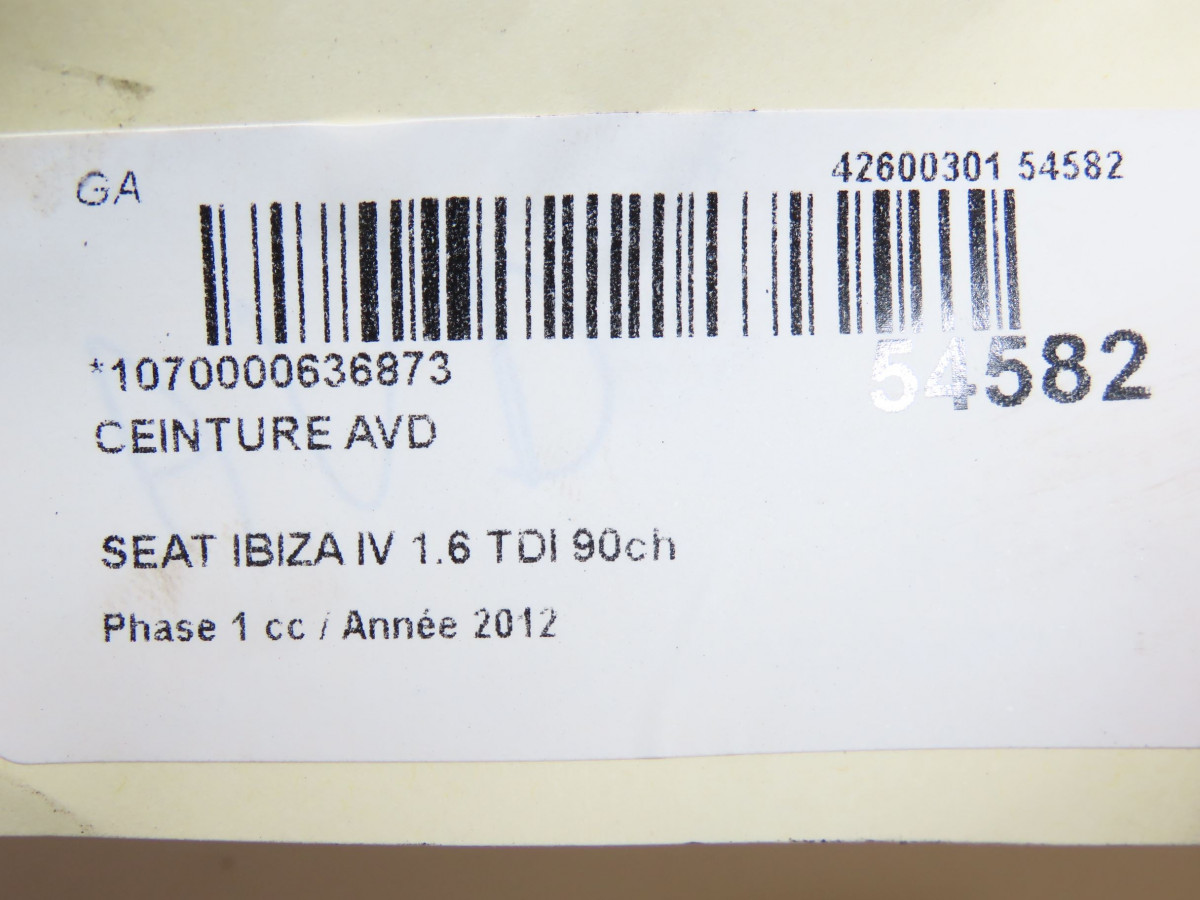 Ceinture avant gauche occasion SEAT IBIZA IV Phase 1 05-2008->01-2012 1.6 TDI 90ch 6J3857705RAA