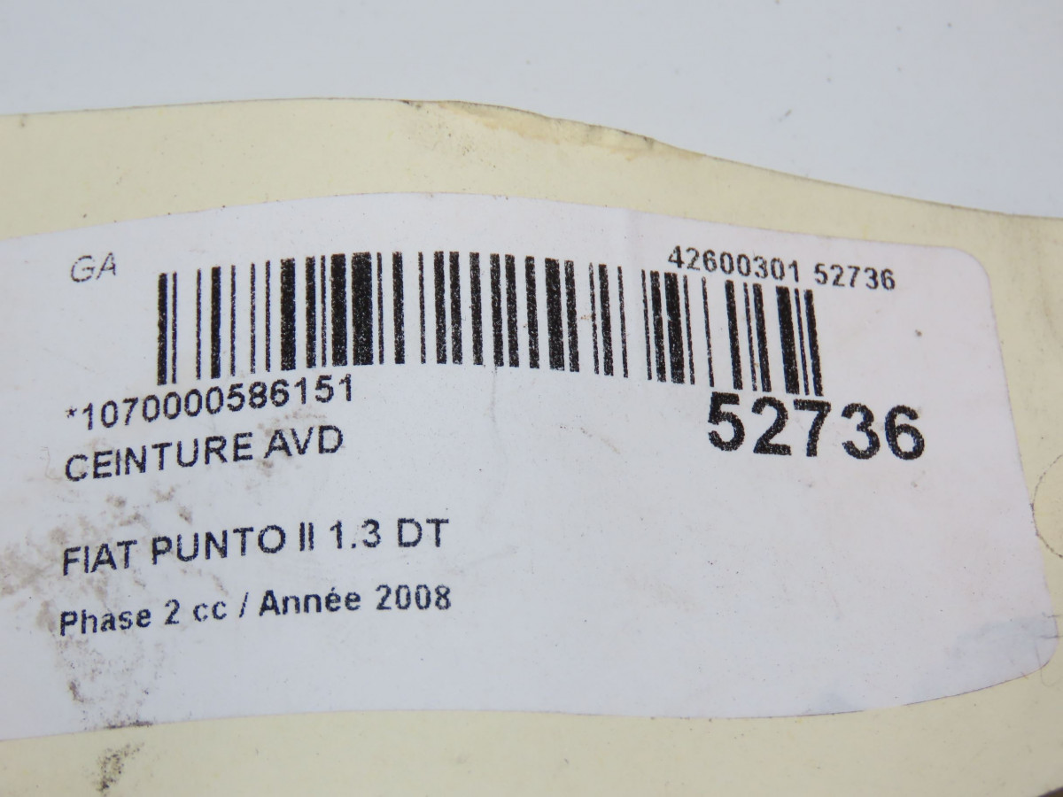 Ceinture avant droite occasion FIAT PUNTO IIPhase 2 05-2003->10-2009 1.3 DT MULTIJET 16v 70ch