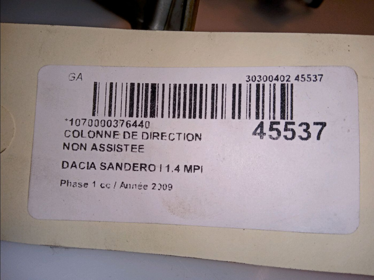 Colonne de direction non assistee occasion DACIA SANDERO IPhase 1 06-2008->10-2012 1.4 MPI 75ch