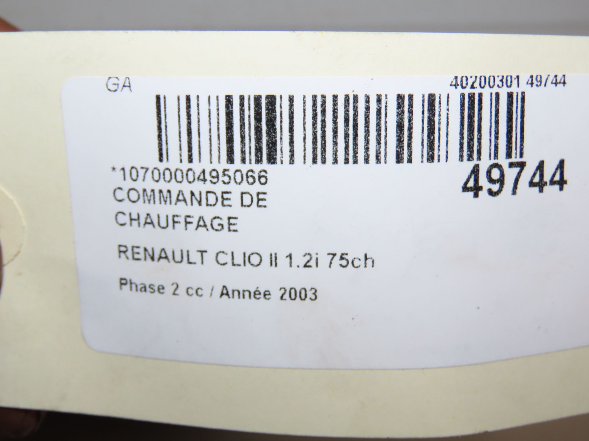 Commande de chauffage occasion RENAULT CLIO IIPhase 2 06-2001->07-2006 1.2i 75ch