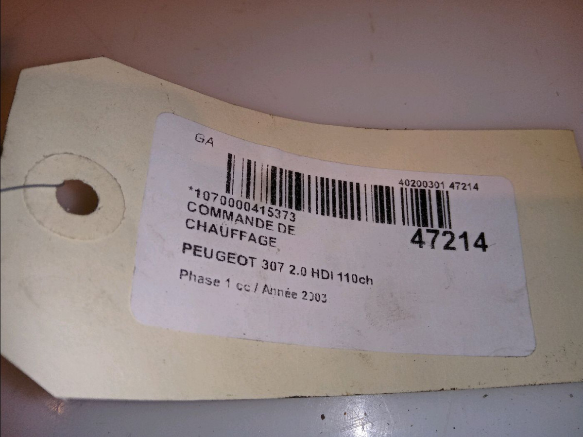 Commande de chauffage occasion PEUGEOT 307Phase 1 04-2001->06-2005 2.0 HDI 110ch