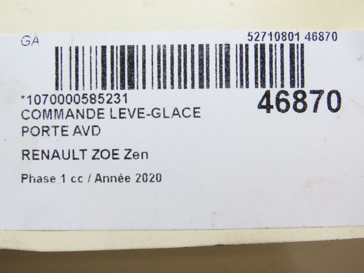 Commande lève-glace porte avant gauche occasion RENAULT ZOE Phase 1 10-2012->... Zen