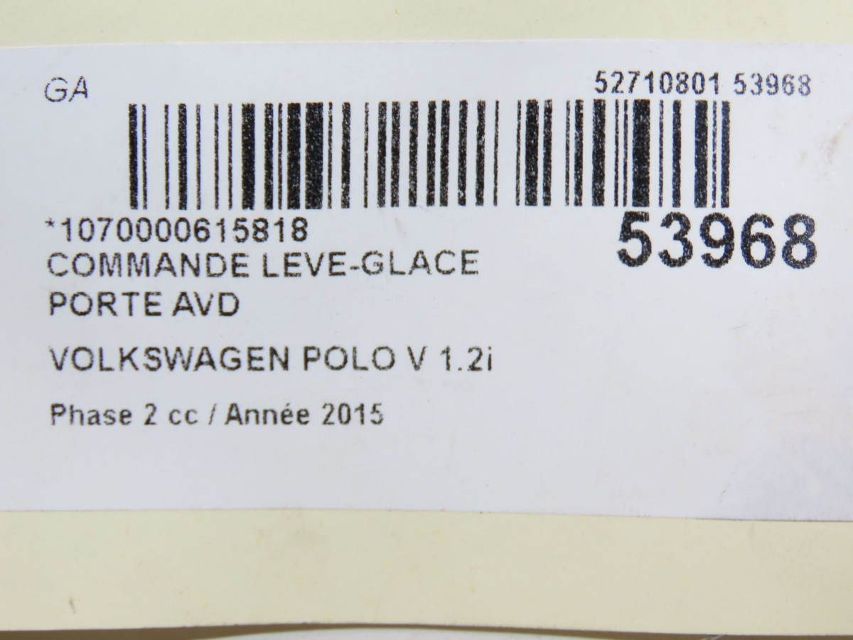 Serrure hayon occasion VOLKSWAGEN POLO V Phase 2 02-2014->... 1.2i 90ch 6R0827505G9B9