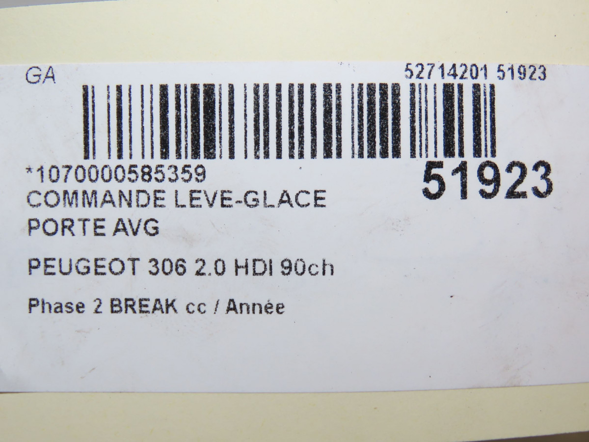 Commande lève-glace porte avant gauche occasion PEUGEOT 306Phase 1 04-1995->04-1999 2.0 HDI 90ch