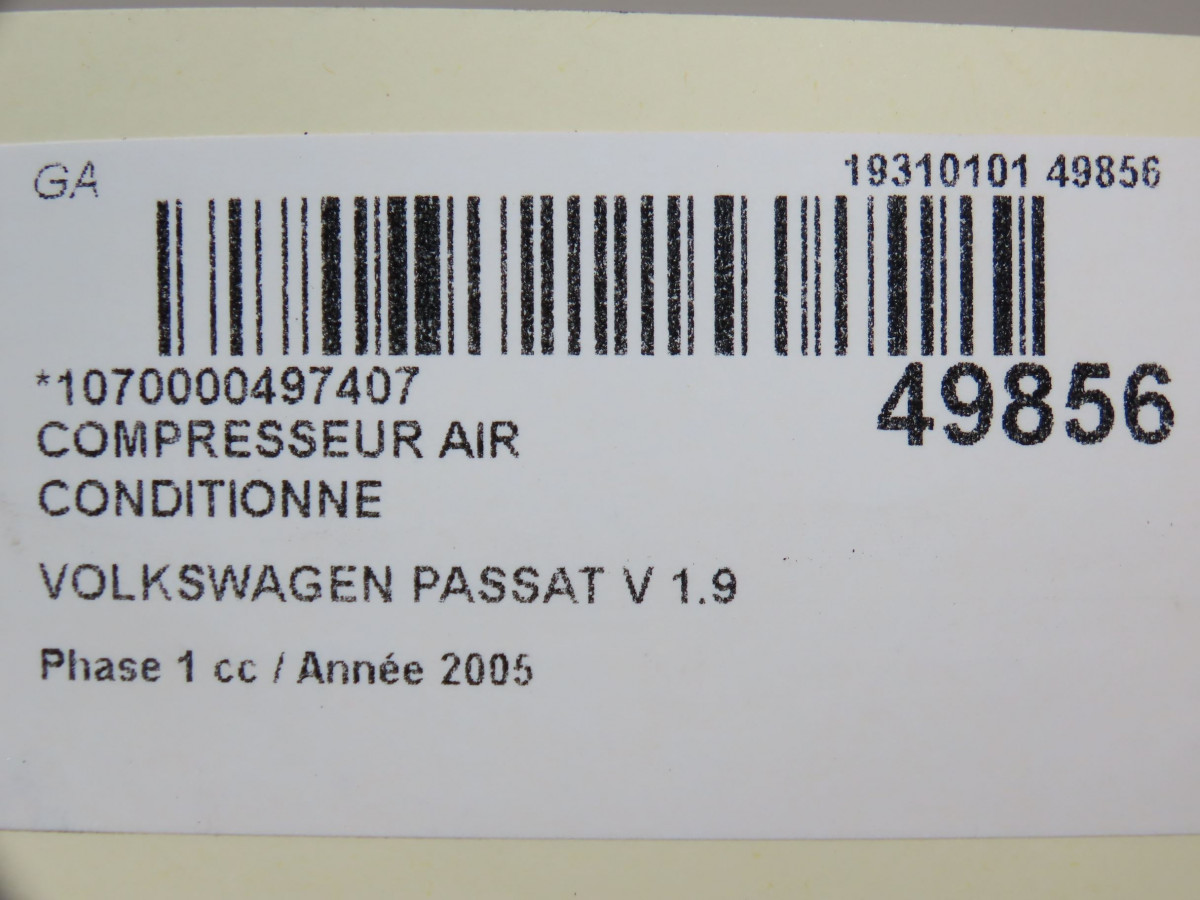 Compresseur air conditionne occasion VOLKSWAGEN PASSAT VPhase 1 03-2005->10-2010 1.9 TDI 105ch
