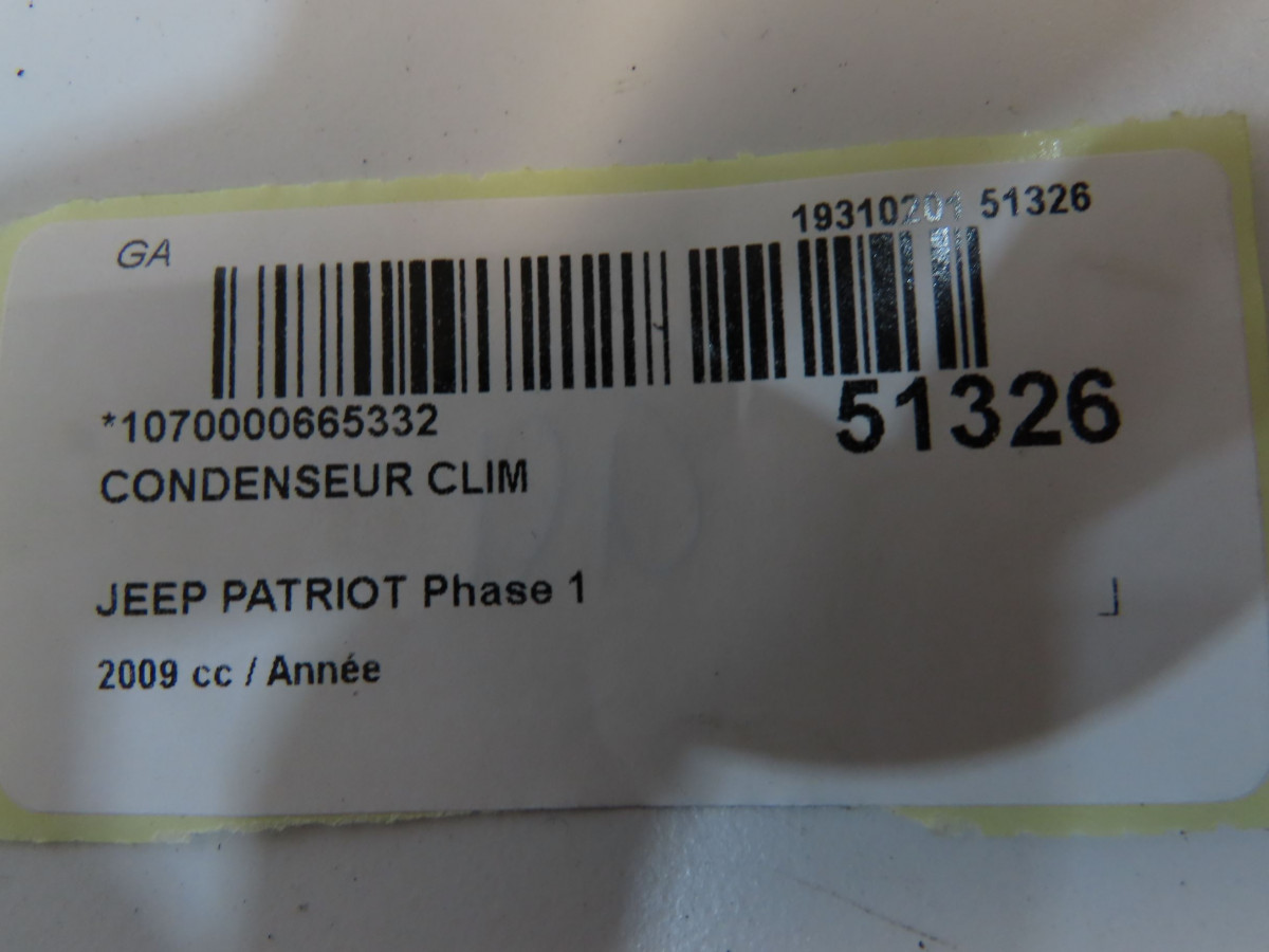 Condenseur clim occasion JEEP PATRIOTPhase 1 11-2007->12-2010