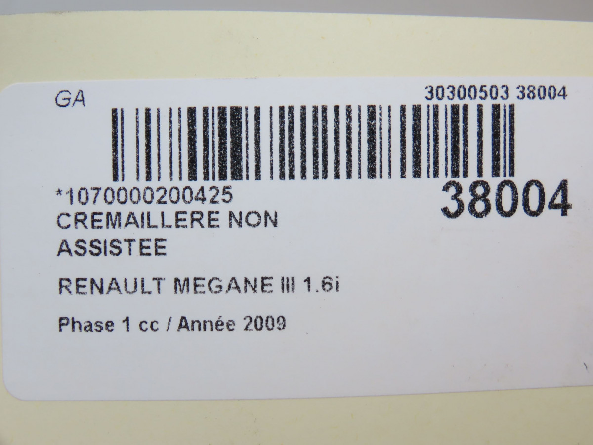 Cremaillere non assistee occasion RENAULT MEGANE IIIPhase 1 11-2008->01-2012 1.6i 16v 110ch