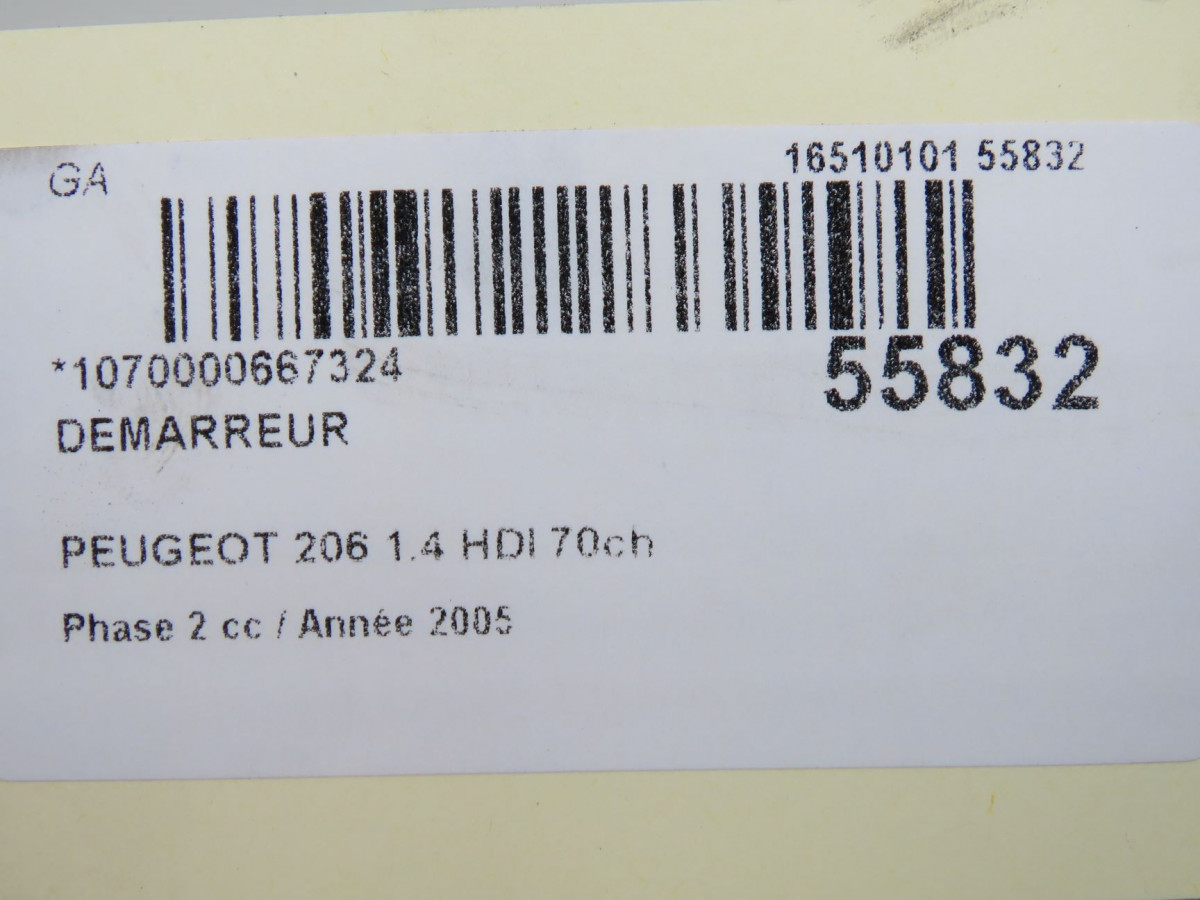 Démarreur occasion PEUGEOT 206Phase 2 02-2003->02-2009 1.4 HDI 70ch