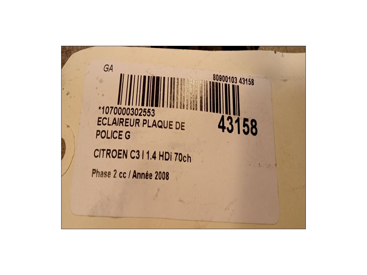 Eclaireur plaque de police d occasion CITROEN C3 I Phase 2 10-2005->12-2010 1.4 HDi 70ch 6340A3