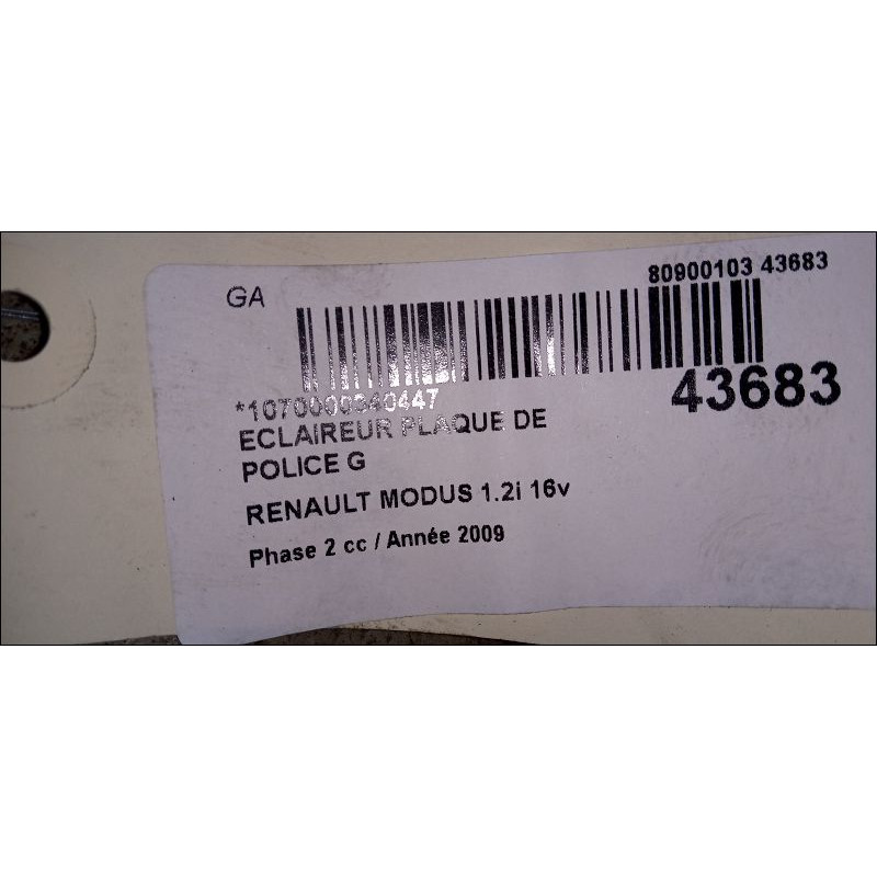 Eclaireur plaque de police d occasion RENAULT MODUS Phase 2 01-2008->12-2012 1.2i 16v 75ch