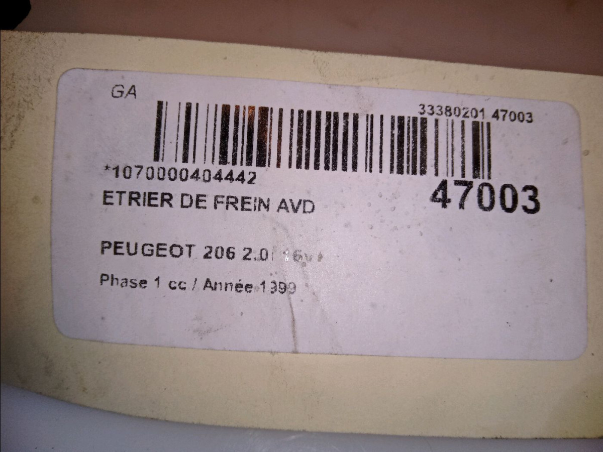 Etrier de frein avant gauche occasion PEUGEOT 206 Phase 1 09-1998->03-2009 2.0i 16v 4400K7