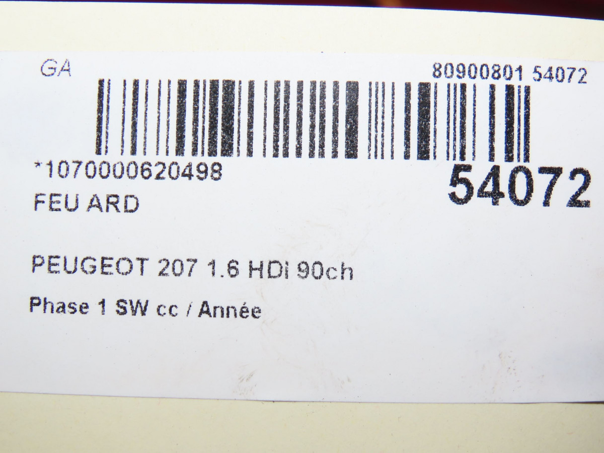 Feu arrière droit occasion PEUGEOT 207Phase 1 SW 07-2007->03-2013 1.6 HDI 90ch