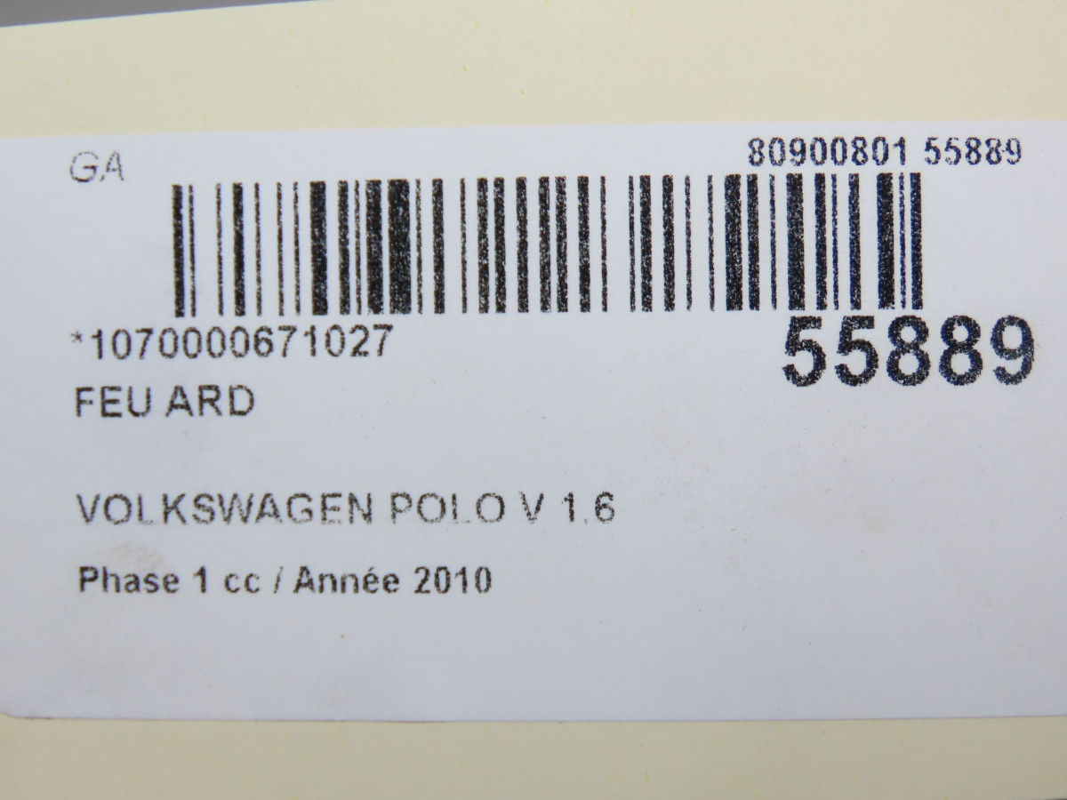 Feu arrière droit occasion VOLKSWAGEN POLO VPOLO V Phase 1 2009-09-01->2014-05-31 1.6 TDI 90
