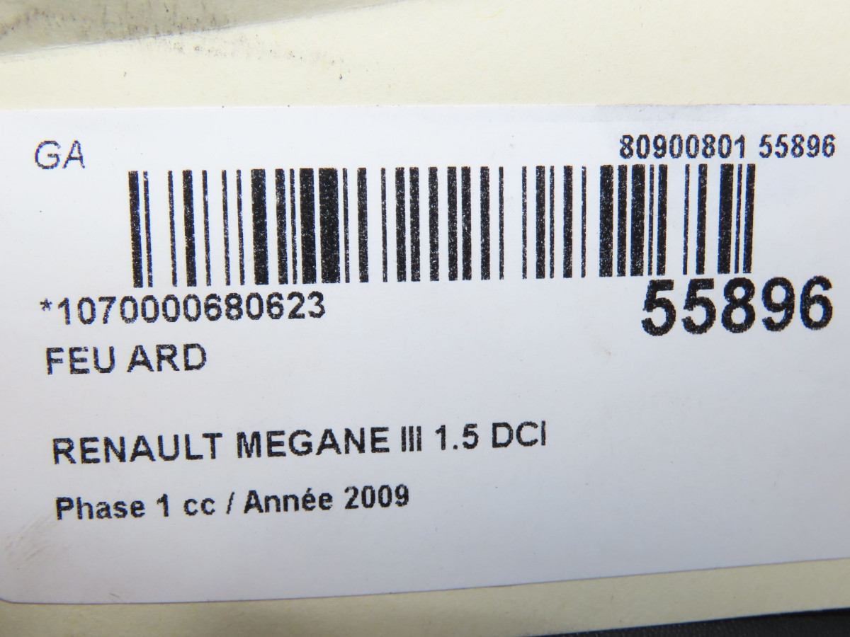 Feu arrière gauche occasion RENAULT MEGANE III Phase 1 11-2008->01-2012 1.5 DCI 105ch 265550008R