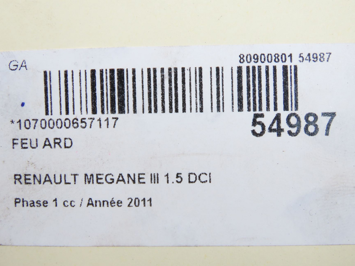 Feu arrière gauche occasion RENAULT MEGANE III Phase 1 11-2008->01-2012 1.5 DCI 110ch 265550007R