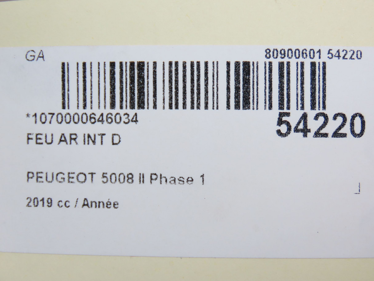 Feu arrière interieur gauche occasion PEUGEOT 5008 II Phase 1 10-2016->... 9811027880
