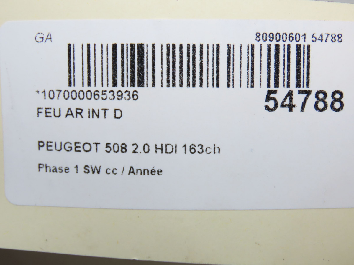 Feu arrière interieur gauche occasion PEUGEOT 508 Phase 1 04-1995->04-1999 2.0 HDI 163ch 6350LZ