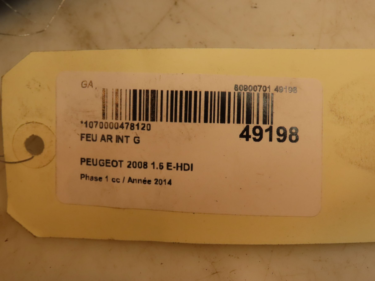 Feu arrière intérieur droit occasion PEUGEOT 2008 Phase 1 01-2013->... 1.6 E-HDI 92ch 9678074580