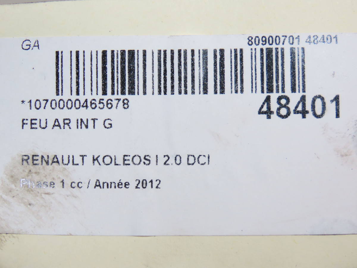 Feu arrière interieur gauche occasion RENAULT KOLEOS IPhase 1 06-2008->12-2011 2.0 DCI 150ch