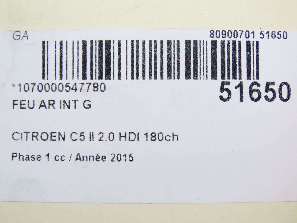 Feu arrière intérieur droit occasion CITROEN C5 II Phase 1 04-2008->... 2.0 HDI 180ch 6351LW