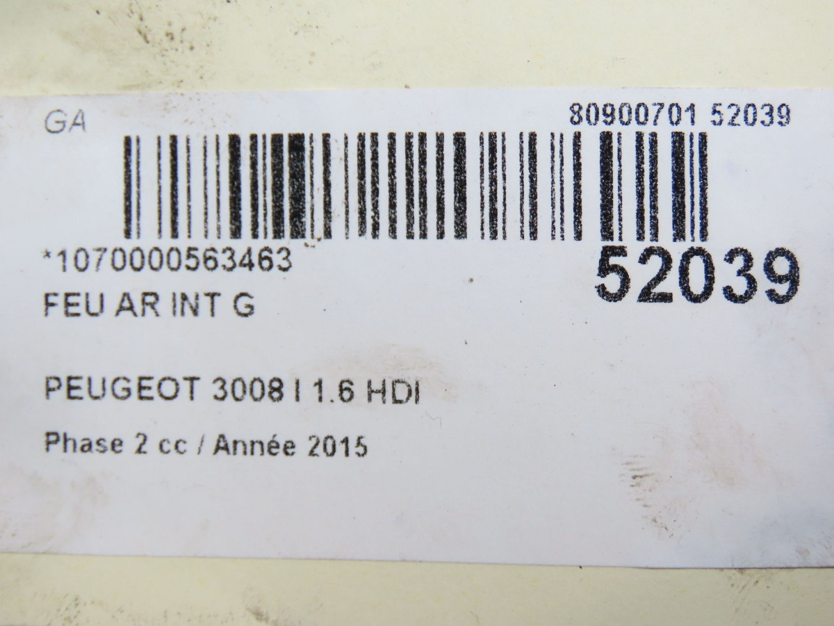 Feu arrière intérieur droit occasion PEUGEOT 3008 I Phase 2 11-2013->... 1.6 HDI 115ch 9805511280