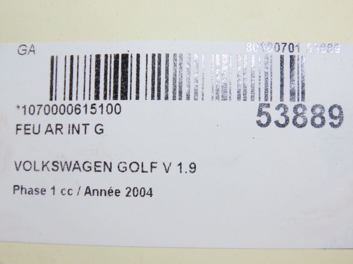 Feu arrière gauche occasion VOLKSWAGEN GOLF V Phase 1 11-2003->10-2008 1.9 TDI 105ch 1K6945095AA