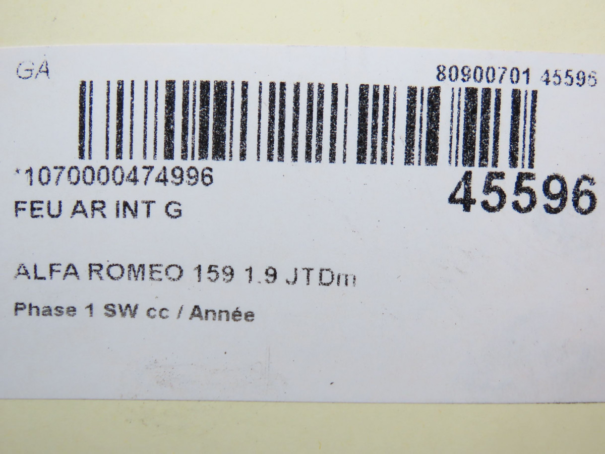 Feu arrière interieur gauche occasion ALFA ROMEO 159Phase 1 04-1995->04-1999 1.9 JTDm 120ch