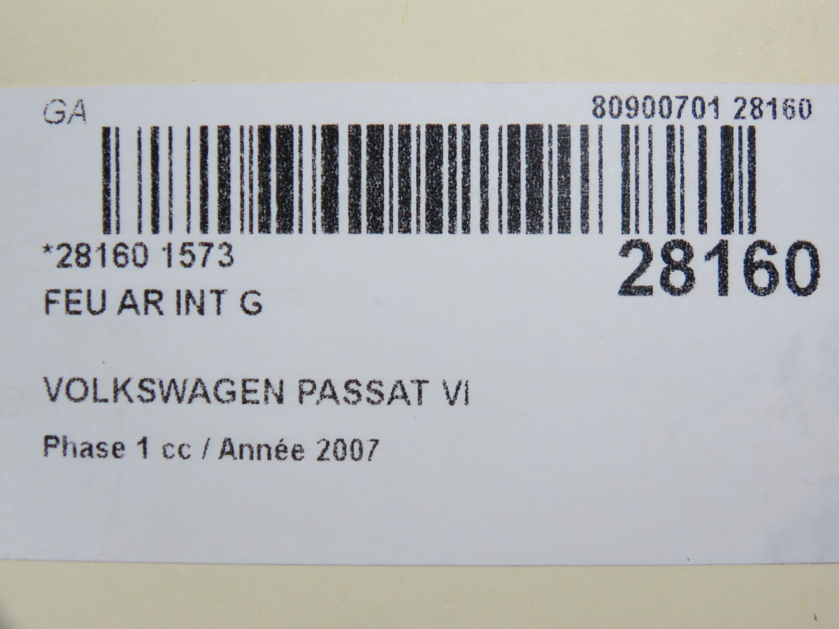 Feu arrière interieur gauche occasion VOLKSWAGEN PASSAT VIPhase 1 10-2010->... 2.0 TDI 140ch