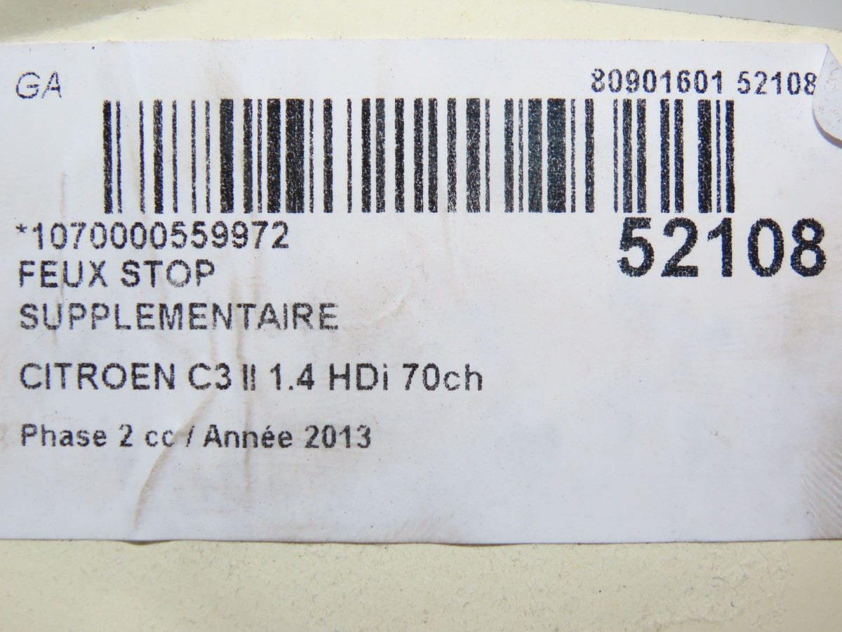 Feux stop supplementaire occasion CITROEN C3 IIPhase 2 03-2013->12-2016 1.4 HDi 70ch