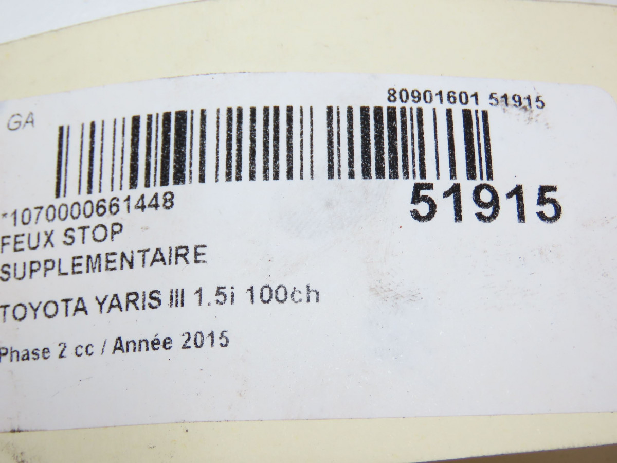Feux stop supplementaire occasion TOYOTA YARIS IIIPhase 2 06-2014->... 1.5i 100ch hybride