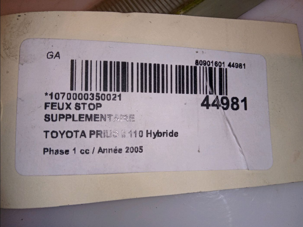 Feux stop supplementaire occasion TOYOTA PRIUS IIPhase 1 03-2004->11-2009 110 Hybride