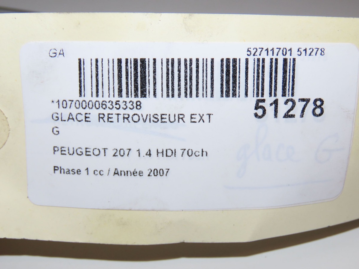 Glace retroviseur exterieur gauche occasion PEUGEOT 207Phase 1 04-2006->06-2013 1.4 HDI 70ch