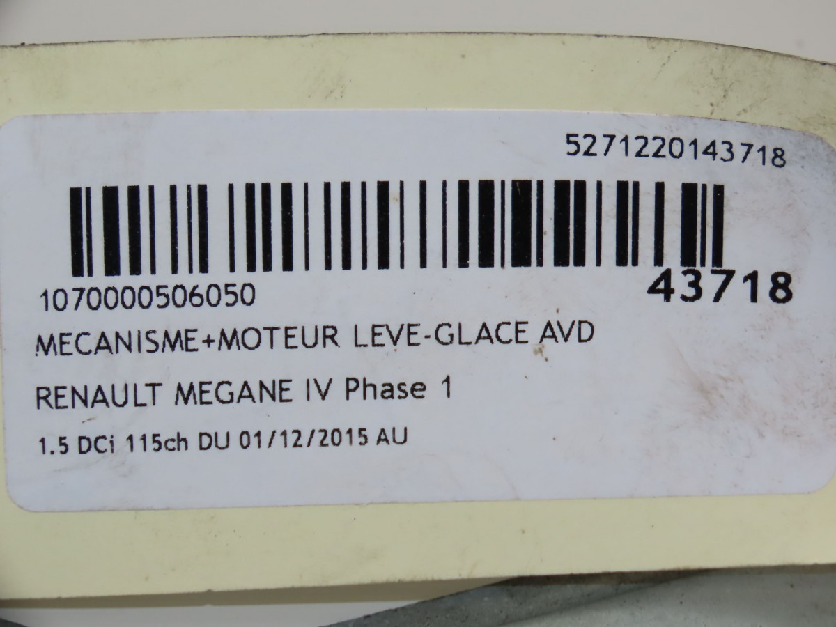 Mecanisme + moteur lève-glace avant droit occasion RENAULT MEGANE IVPhase 1 12-2015->... 1.5 DCi 115ch